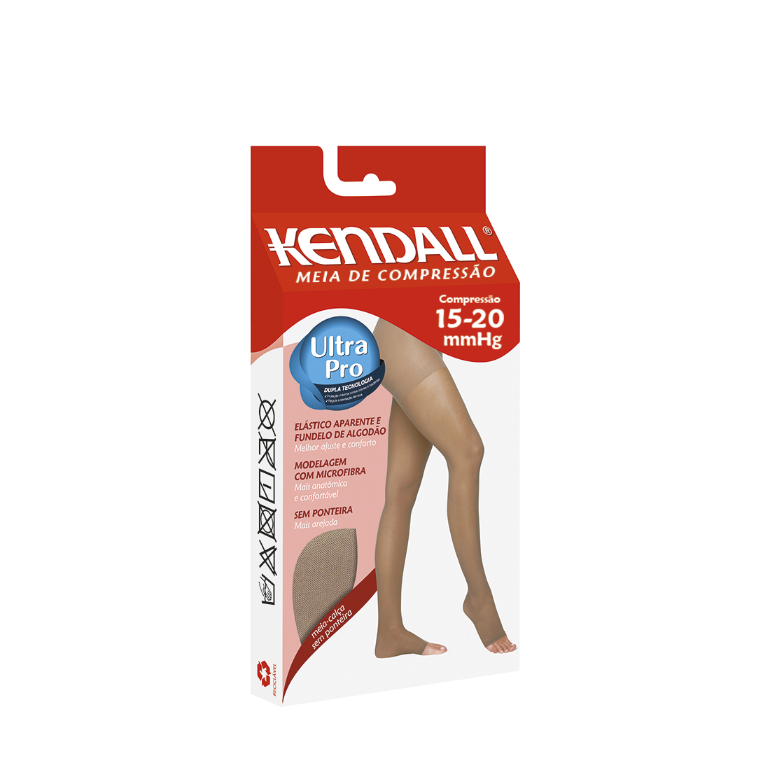 A Meia Calça sem ponteira (15-20 mmHg) tem compressão graduada, o que significa que a maior compressão está concentrada no tornozelo e vai decrescendo gradativamente até a altura da coxa. Essa compressão facilita o retorno do sangue dos membros inferiores ao coração.